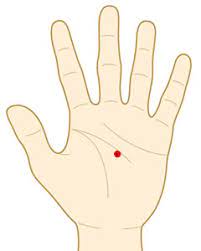 場所: 手を握ったとき、中指と薬指の先が当たるところ(手のひらの中央)。