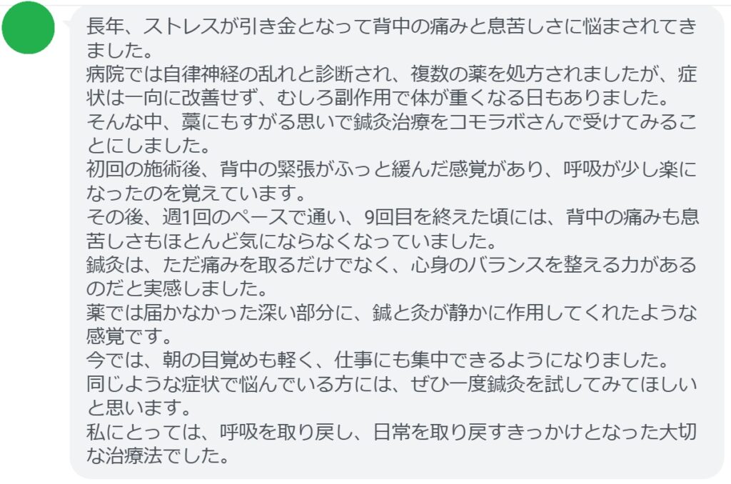 【ストレスによる背中の痛みが改善された方の感想(口コミレビュー)】