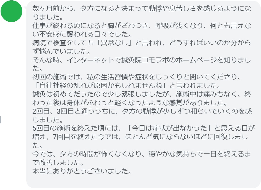 【夕方に起こる動悸や息苦しさが改善された方の感想(口コミレビュー)】