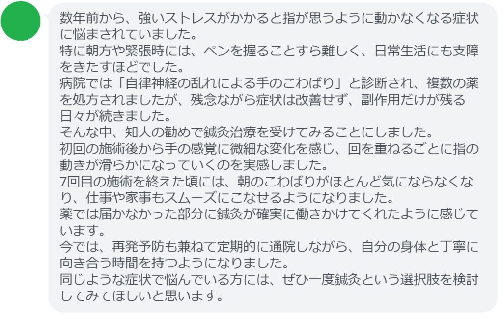 【ストレスで指が動かしにくい症状が改善された方の感想(口コミレビュー)】