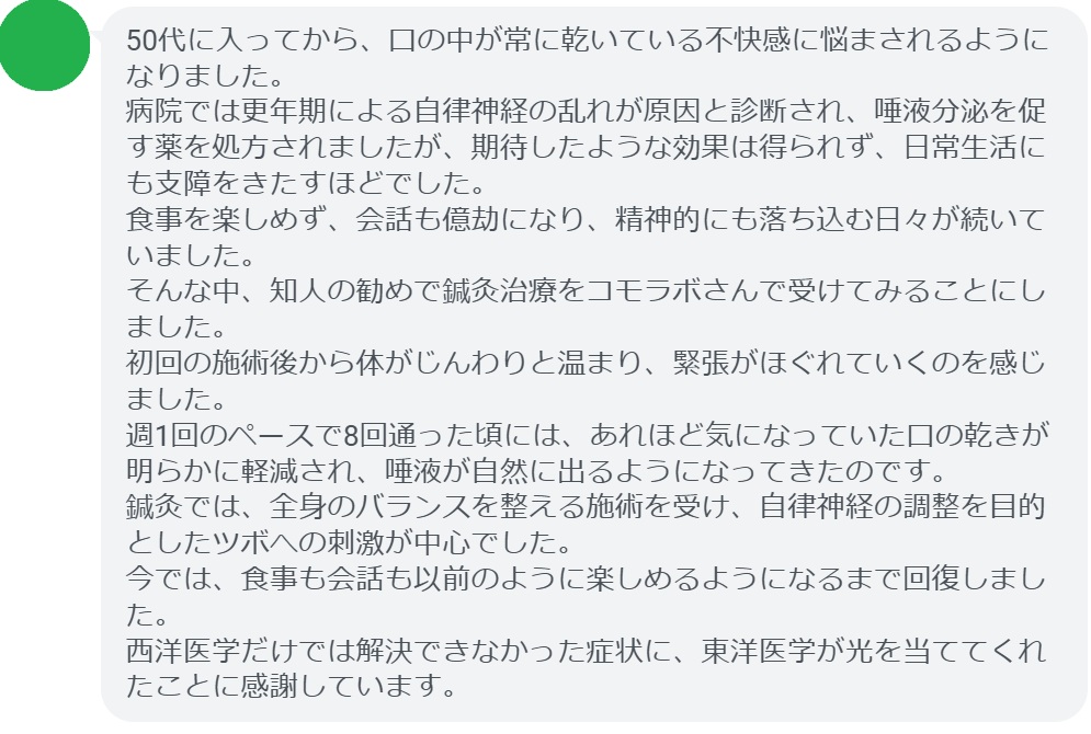 【更年期のドライマウスが改善された方の感想(口コミレビュー)】