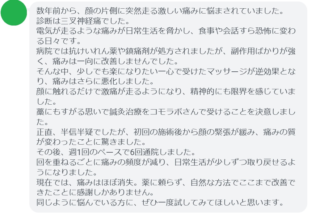 【三叉神経痛が改善された方の感想(口コミレビュー)】