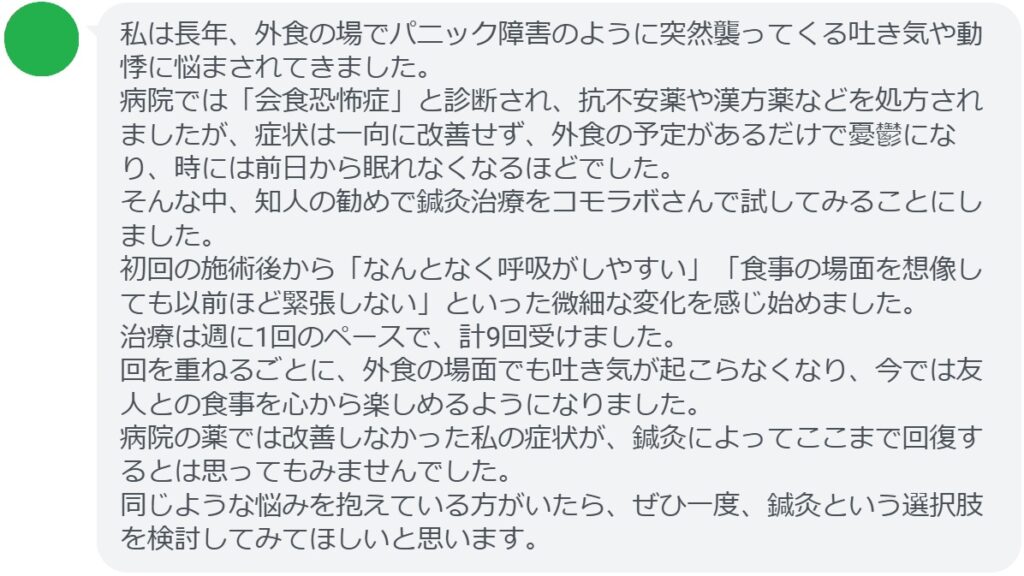 【会食恐怖症が改善された方の感想(口コミレビュー)】