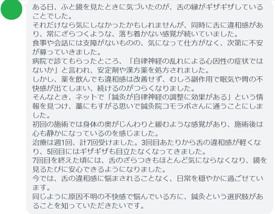 【舌がギザギザする違和感が改善された方の感想(口コミレビュー)】