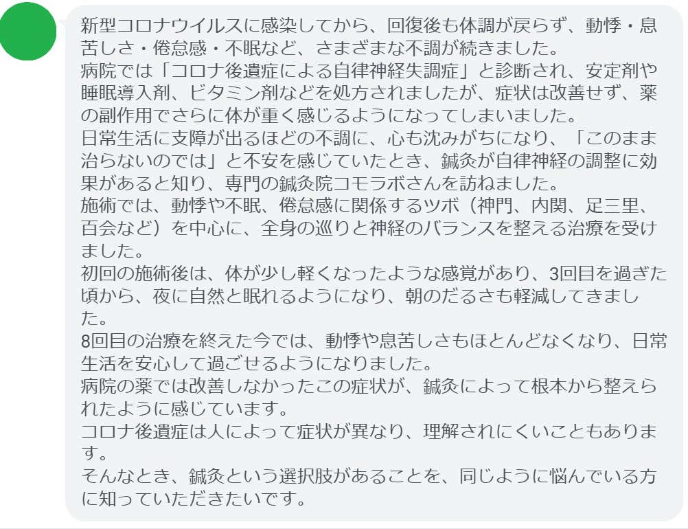 【コロナ後遺症による自律神経失調症が改善された方の感想(口コミレビュー)】