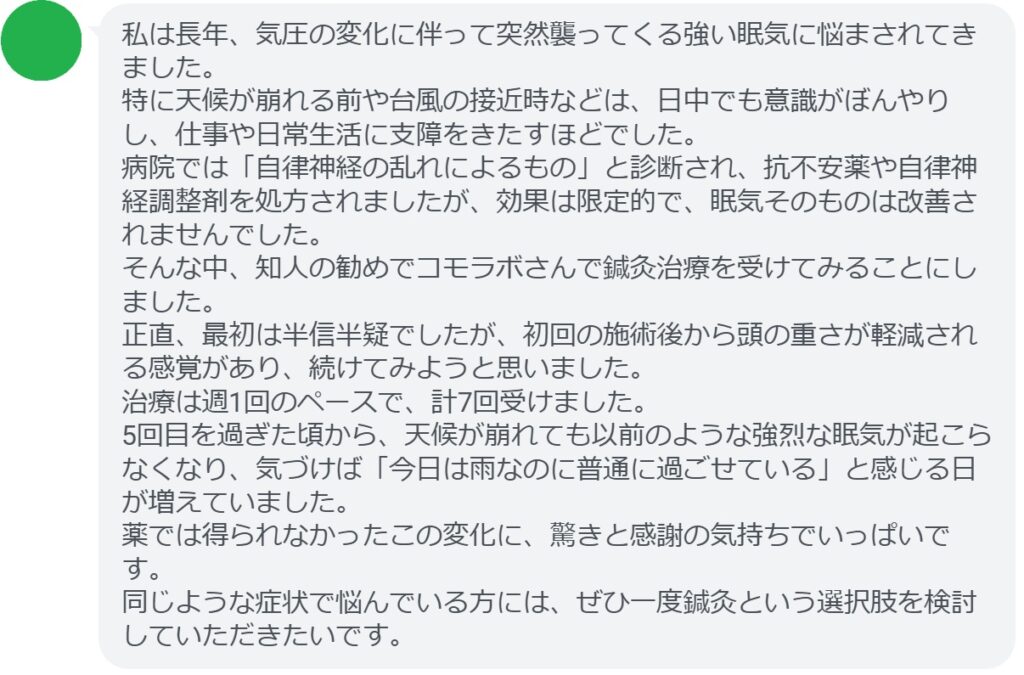 【気圧の変化による眠気が改善された方の感想(口コミレビュー)】