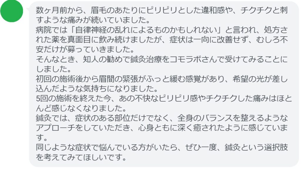 【眉毛のピリピリした痛みが改善された方の感想(口コミレビュー)】