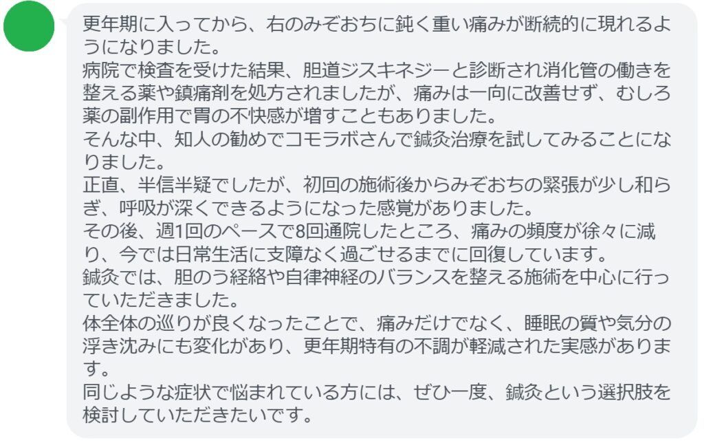 【更年期における胆道ジスキネジーが改善された方の感想(口コミレビュー)】