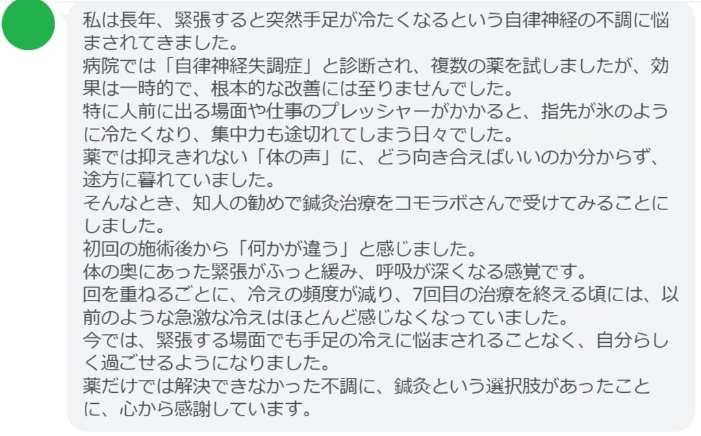 【緊張すると手足が冷たくなる症状改善された方の感想(口コミレビュー)】