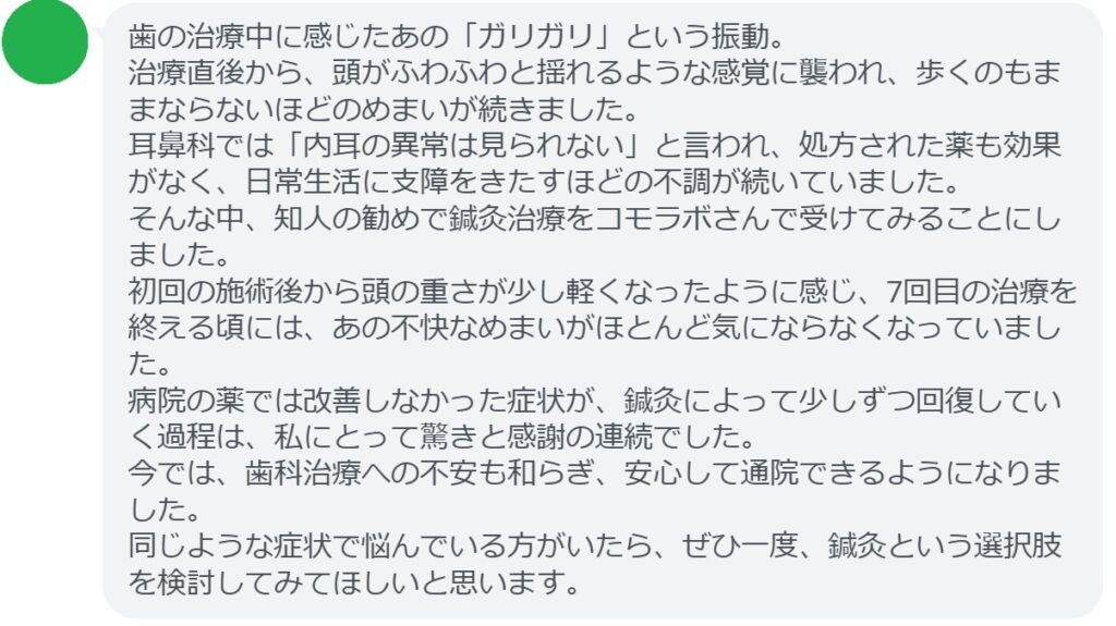 【歯の治療後のめまいが改善された方の感想(口コミレビュー)】