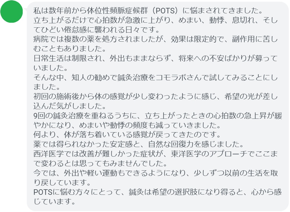 【体位性頻脈症候群(POTS)が改善された方の感想(口コミレビュー)】