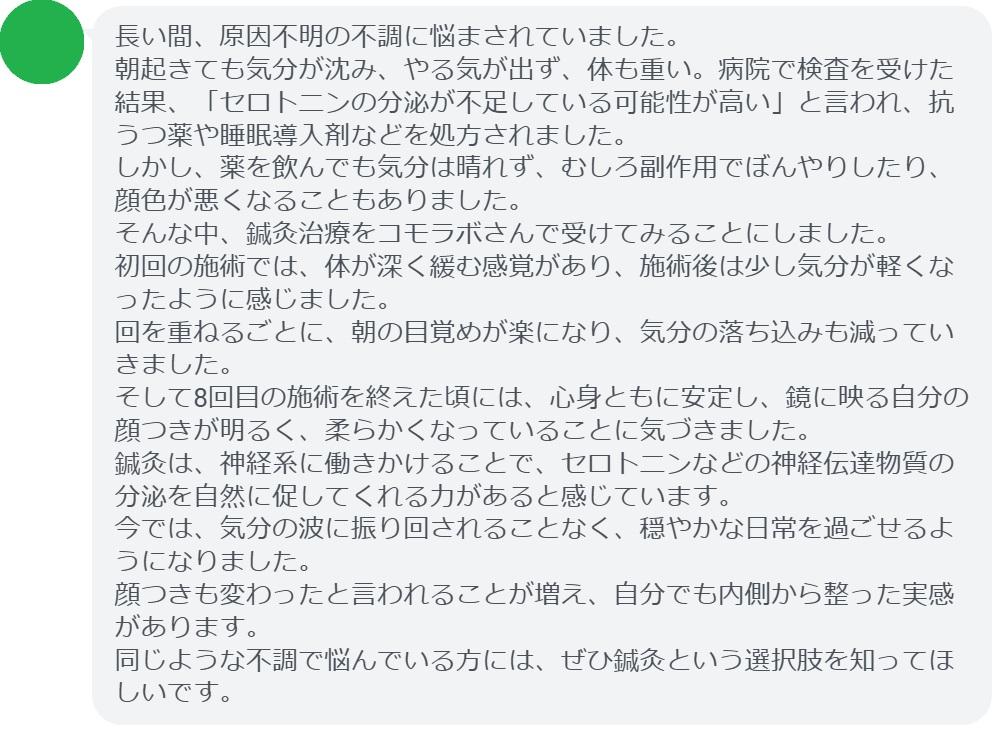 同じような不調で悩んでいる方には、ぜひ鍼灸という選択肢を知ってほしいです。