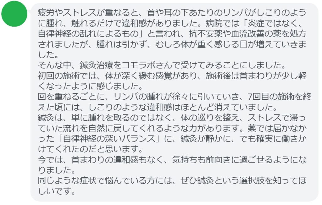 【疲労によるリンパの腫れが改善された方の感想(口コミレビュー)】