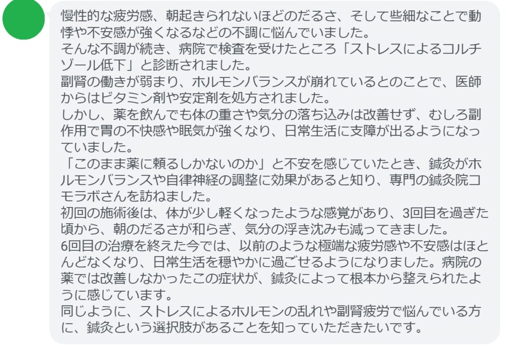 【コルチゾール低下による不調が改善された方の感想(口コミレビュー)】