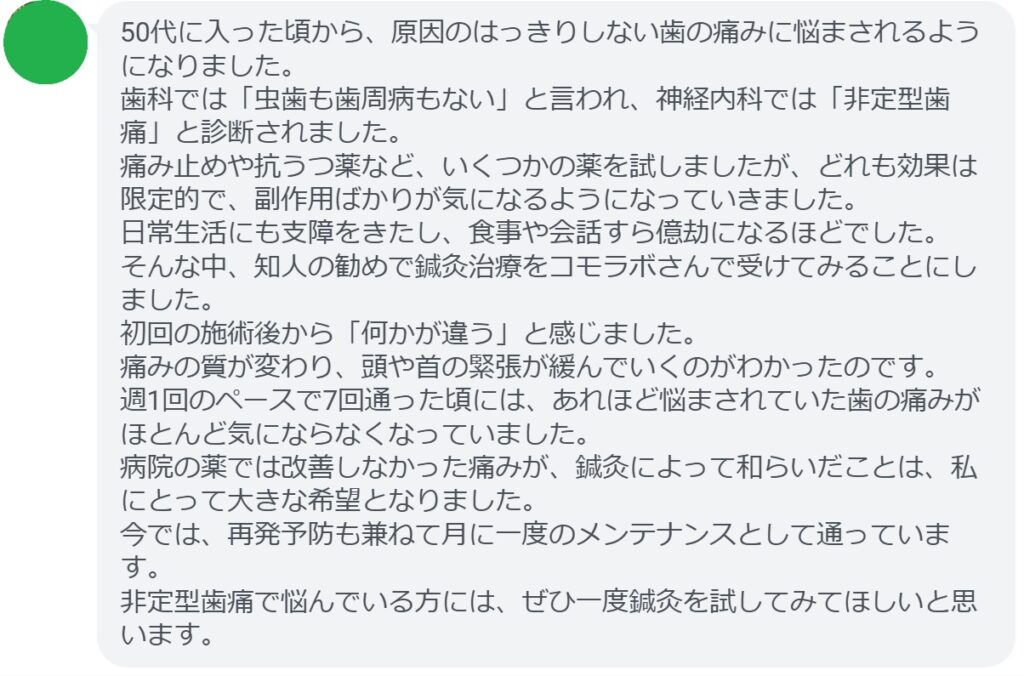 【非定型歯痛が改善された方の感想(口コミレビュー)】