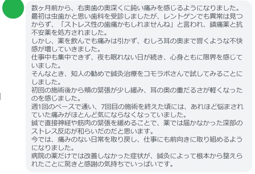 【歯と耳が痛い症状が改善された方の感想(口コミレビュー)】
