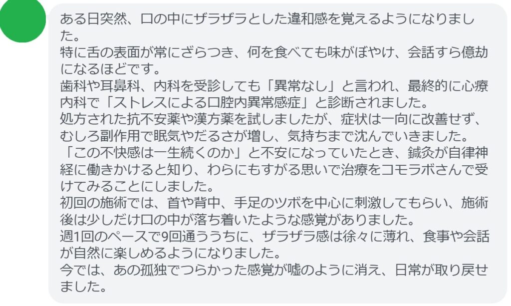 【口腔異常感症が改善された方の感想(口コミレビュー)】