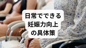毎日7時間前後の良質な睡眠、週3回の有酸素+筋トレ、適正体重の維持はホルモン安定と妊娠力向上に直結します。